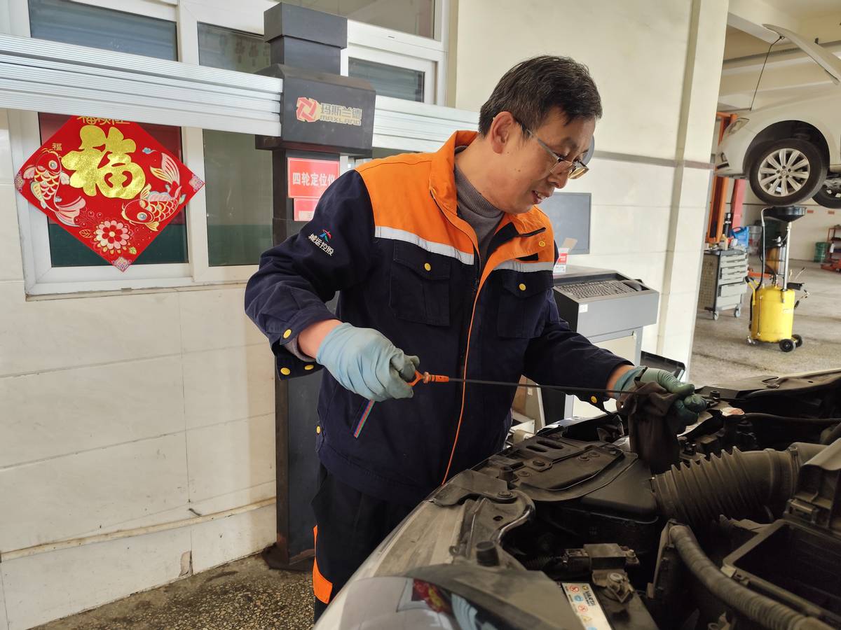 这是郝洪亮连续第35年春节在岗,他只能通过视频与潍坊老家的亲人们“远程团聚”。“春节很多汽修门店放假,市民修车不便,这更体现了国有汽修企业节日坚守、便民利民的重要性。虽然不能陪伴家人,但能给市民提供便利,我觉得值。”郝洪亮边忙边说。修好的车刚驶走,下一辆车开了进来。擦了把汗,他迎了上去。