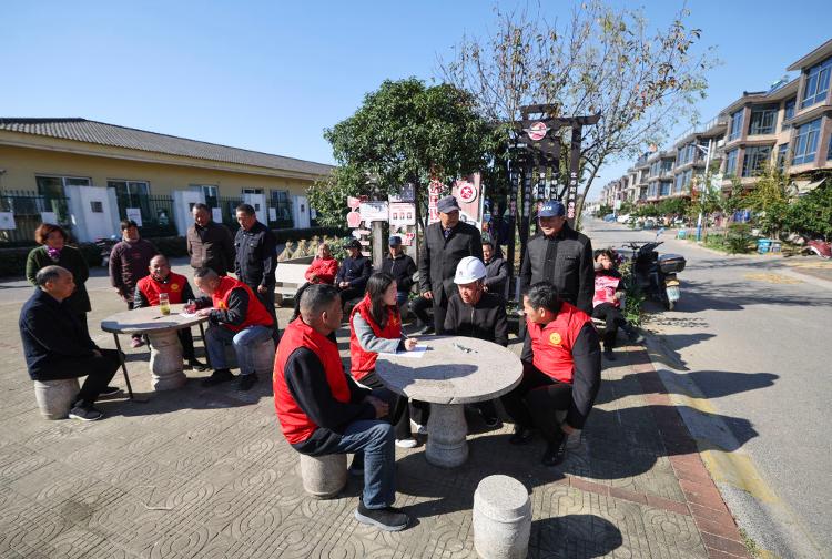 2025年11月19日,浙江省湖州市长兴县吕山乡龙溪村的村民议事协商小组在村里的议事协商公园里就村务发展征集意见。新华社记者 徐昱 摄