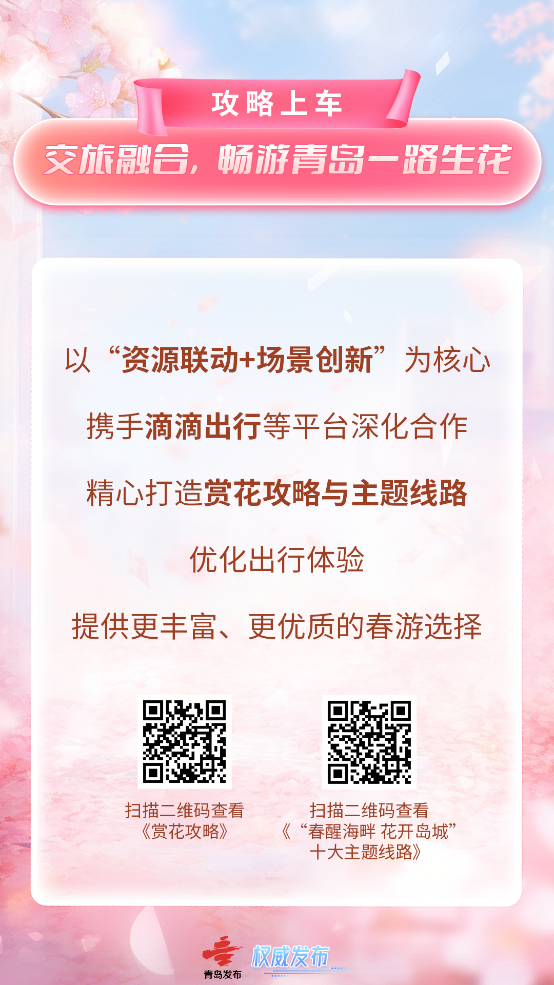 主要包括三大专属服务:一是推出“春游特惠礼包”,由滴滴出行投入价值150万元的专属出行券包;二是开展线上联合营销,通过文旅官方渠道与滴滴APP、公众号等多平台联动,发起“来青岛赴一场春暖花开”、“一路繁花到青岛”等话题互动;三是上线首批100辆“青岛文旅推荐官”主题网约车,打造一道流动的城市文旅风景线,让便捷出行与深度游玩无缝衔接。另外,城运文旅集团推出“花语人间采摘草莓、赏梅花+幸福村”“探幽琅琊台・浪漫唐岛湾”等春日团建一日游线路,打造时尚出游新模式。