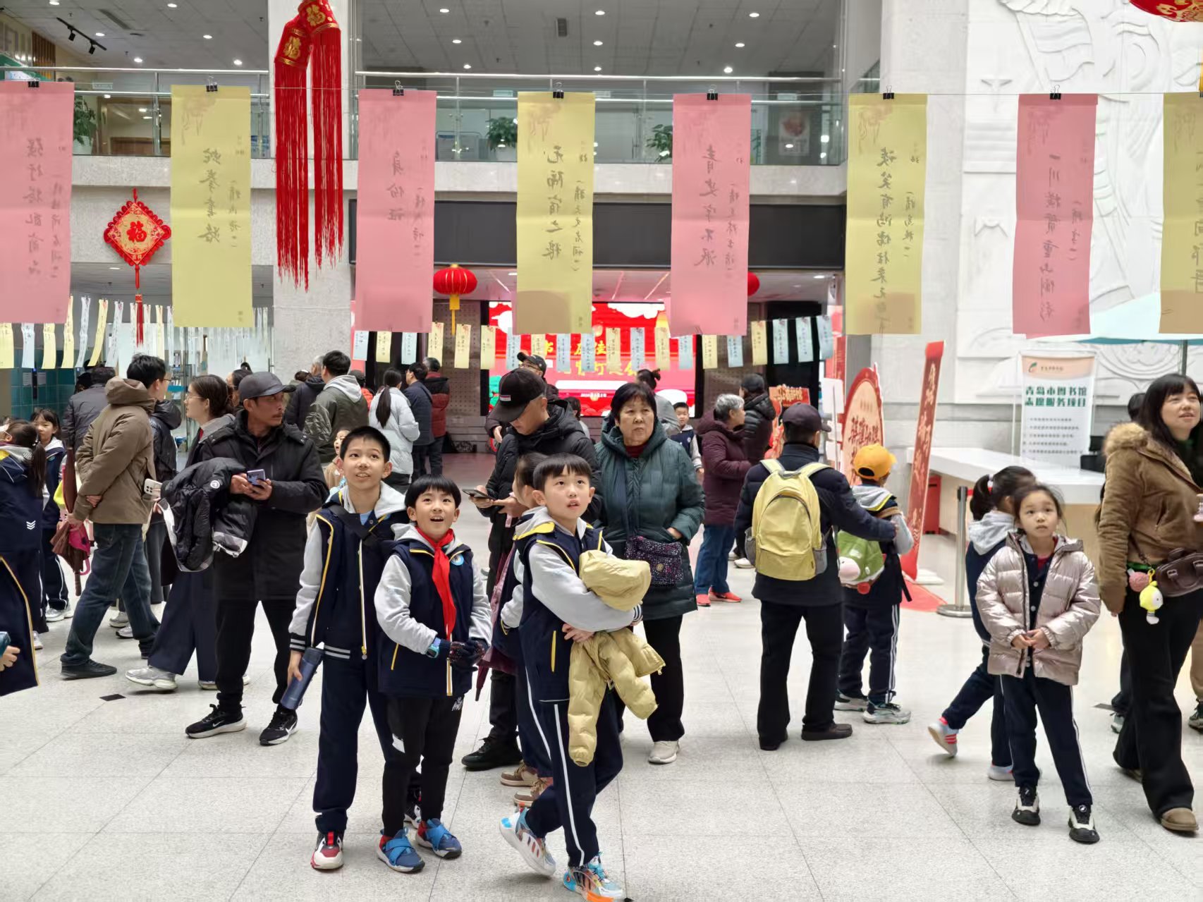 元宵节当天,青岛市图书馆二楼大厅张灯结彩,缤纷灯谜挂满展区,现场洋溢着喜庆祥和的节日氛围。此次灯谜会精心设计的谜题兼具知识性与趣味性,内容横跨历史文化、科普常识、生活智慧等多个领域,难易兼顾、老少皆宜。活动现场,读者们或驻足凝思小声探讨,或豁然开朗喜获答案,在动脑思考的乐趣中感受传统民俗的独特魅力。