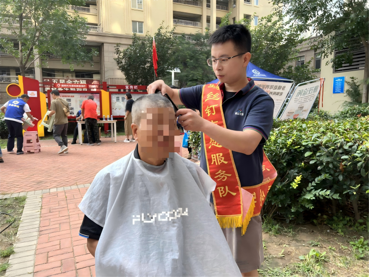 特殊的“考试”:志愿者范春浩在志愿服务活动中为“老”志愿者理发