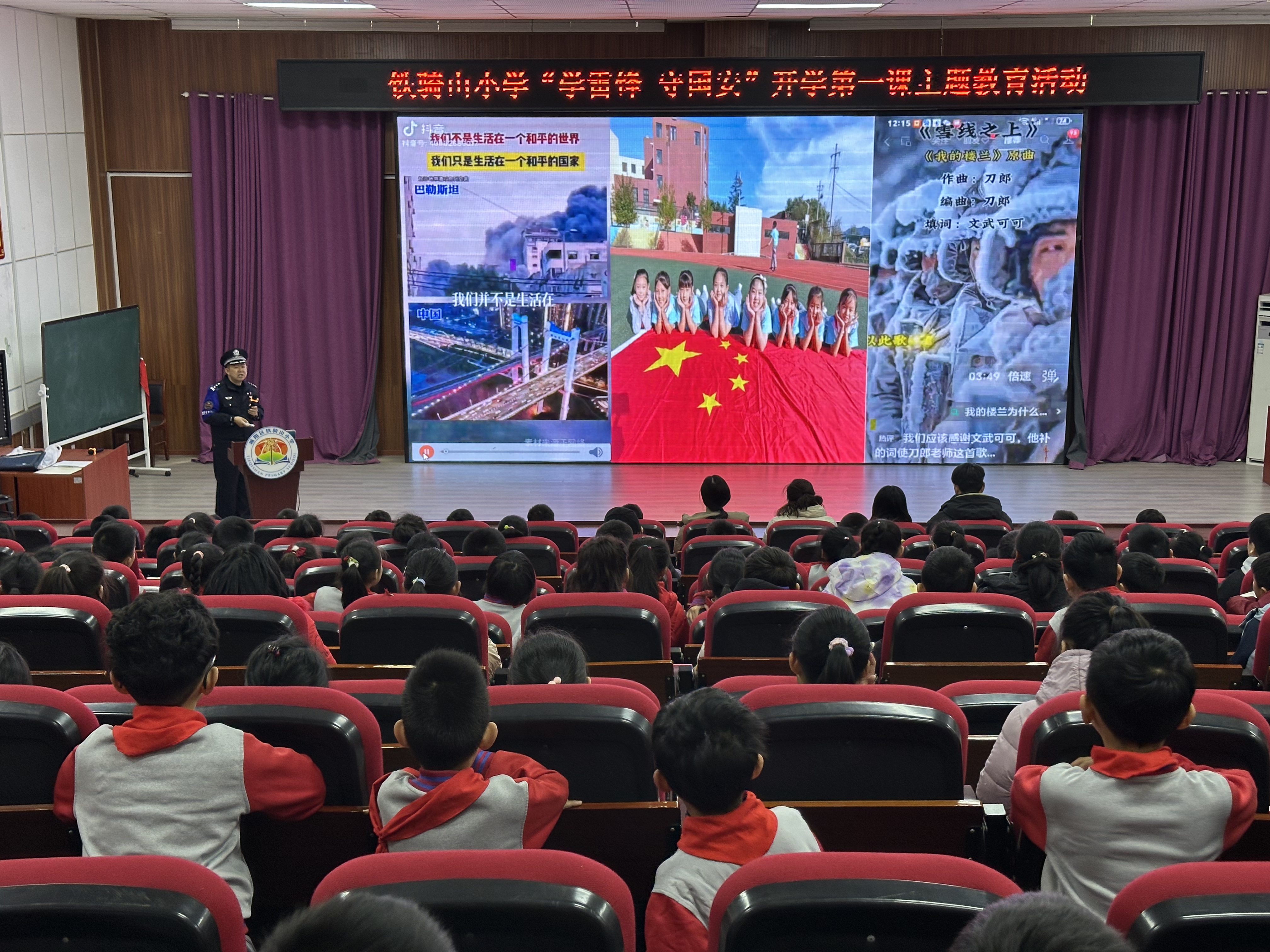 3月5日上午,惜福镇派出所联合交管四中队走进铁骑山小学,开展“学雷锋·守国安”开学第一课活动,民警讲述雷锋故事、解读精神内涵,结合案例普及校园安全、交通安全等知识,鼓励同学们争做新时代好少年。