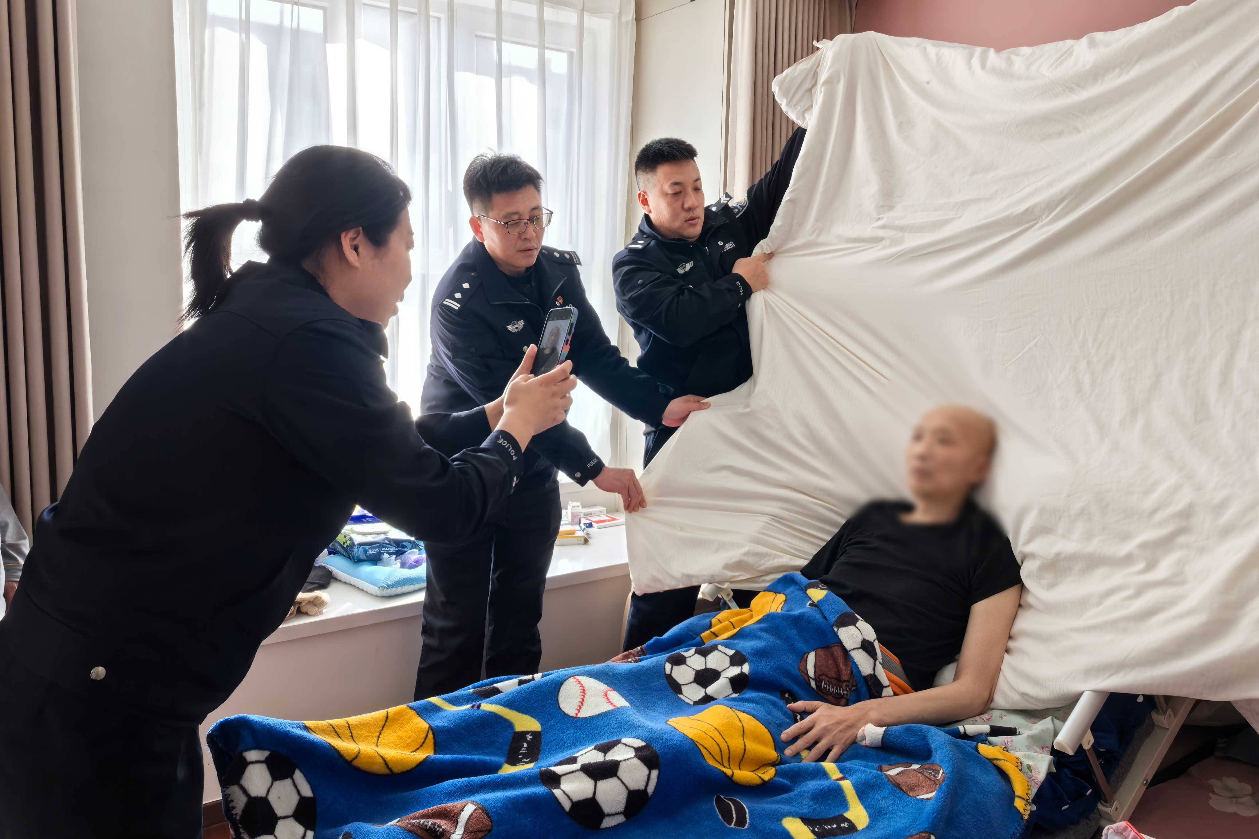 无独有偶,棘洪滩派出所社区民警在日常走访中了解到,居民矫先生身患疾病,身份证即将到期,而该证件事关医保报销等紧急事宜,可矫先生行动不便,无法到窗口办理换证业务。户籍民警知晓后,第一时间主动对接矫先生家属,约定合适的上门时间。2月25日下午,户籍工作人员如约而至,耐心协助矫先生整理衣物、调整坐姿、调试光线,顺利完成人像采集工作,并承诺证件制好后第一时间送证上门,周到细致的服务,让矫先生及家人连连致谢、倍感暖心。