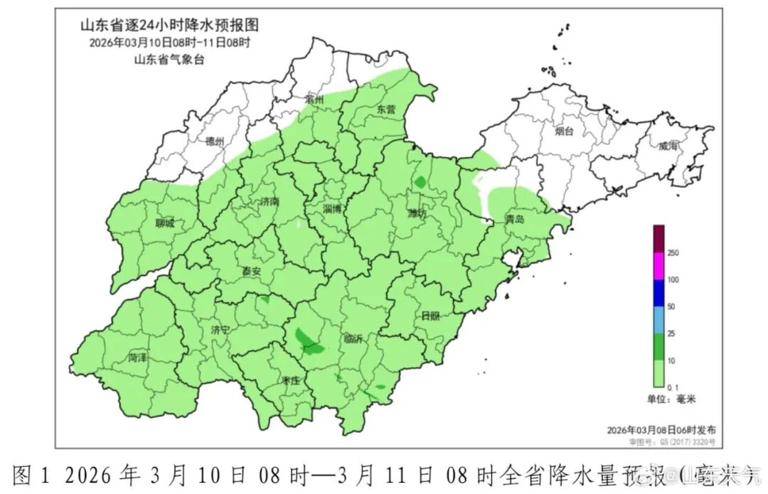 10日夜间到11日白天,大部地区有分散性阵雨,崂山山区短时局部有雨夹雪,西海岸、平度、莱西有阵雨,请留意天气变化。