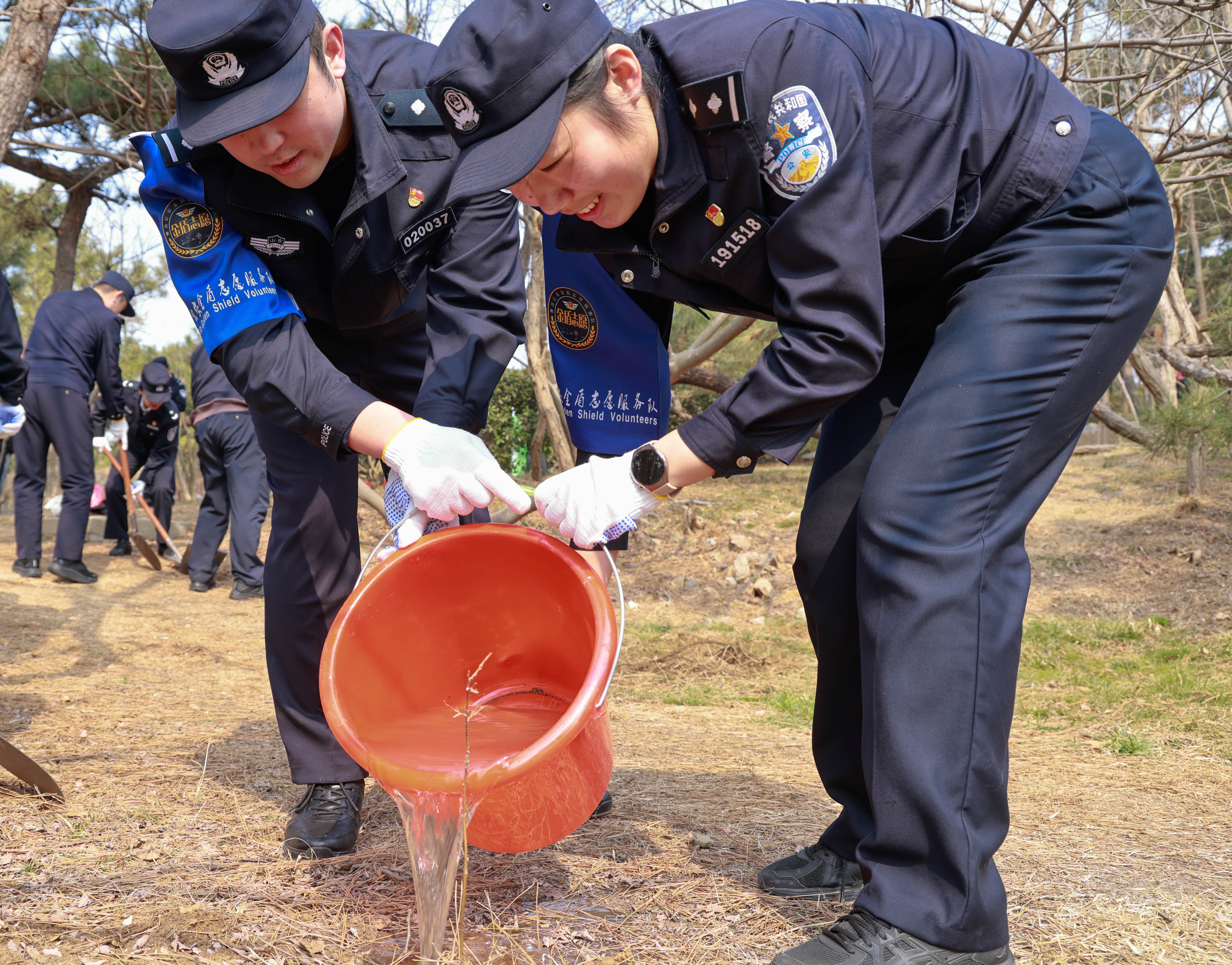 来自队建处、宣传处、森警支队、情指中心、治安支队等单位的30余名青年民警代表参加了活动。活动现场,民警们热情洋溢,分工协作,挥锹铲土、扶苗填坑、提水浇灌,栽下一棵棵树苗,为初春的岛城增添了新的生机与活力。