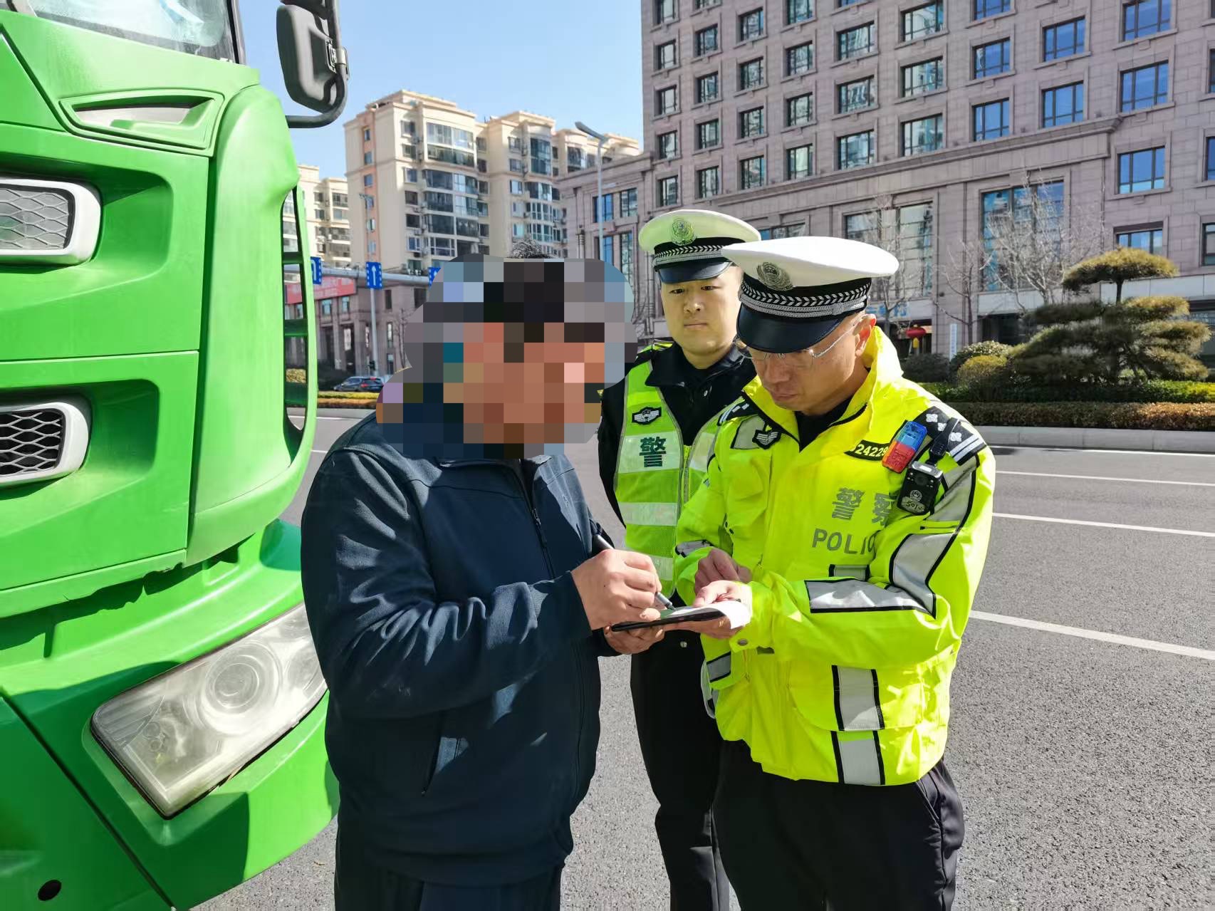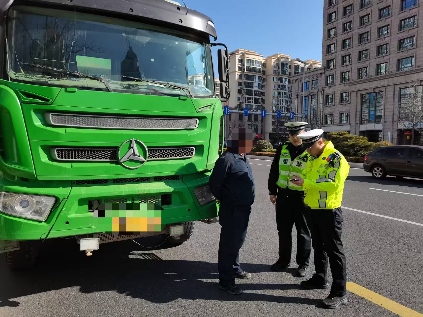 QMG青岛广电3月13日讯 为全力筑牢道路交通安全防线,有效预防和减少道路交通事故,3 月 7 日,青岛市公安局市南分局交管大队五中队在福州南路开展路面执勤执法,成功查处一起重型货车非法改装、严重超载违法行为,及时消除道路交通安全隐患。