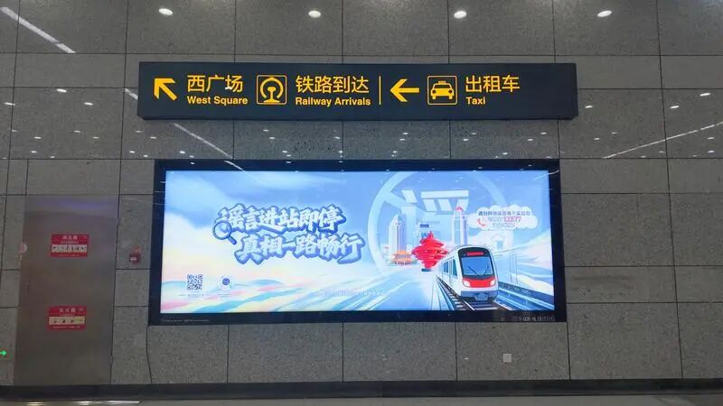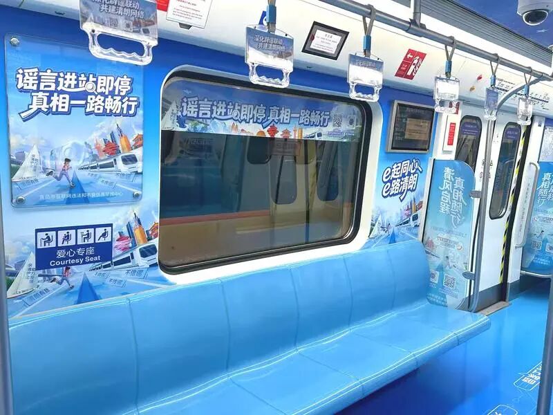 此次推出的“辟谣号”专列实现了全方位场景覆盖。从车厢内部到站台空间及高铁站等人流量大的出入口,以特色IP“青小鸥”为主线,通过年轻化、亲切化的标语表达,将网络科普与辟谣引导融入市民日常出行。在拉手、看板、灯箱等高频接触点,“12377”举报方式被置于“C位”,市民只需扫码或拨打热线电话即可直达“中央网信办(国家互联网信息办公室)违法和不良信息举报中心”。推广12377这一官方权威举报平台,就是为了让市民掌握最权威、最便捷的武器,以此净化网络生态,切实捍卫每一位网民的合法权益。