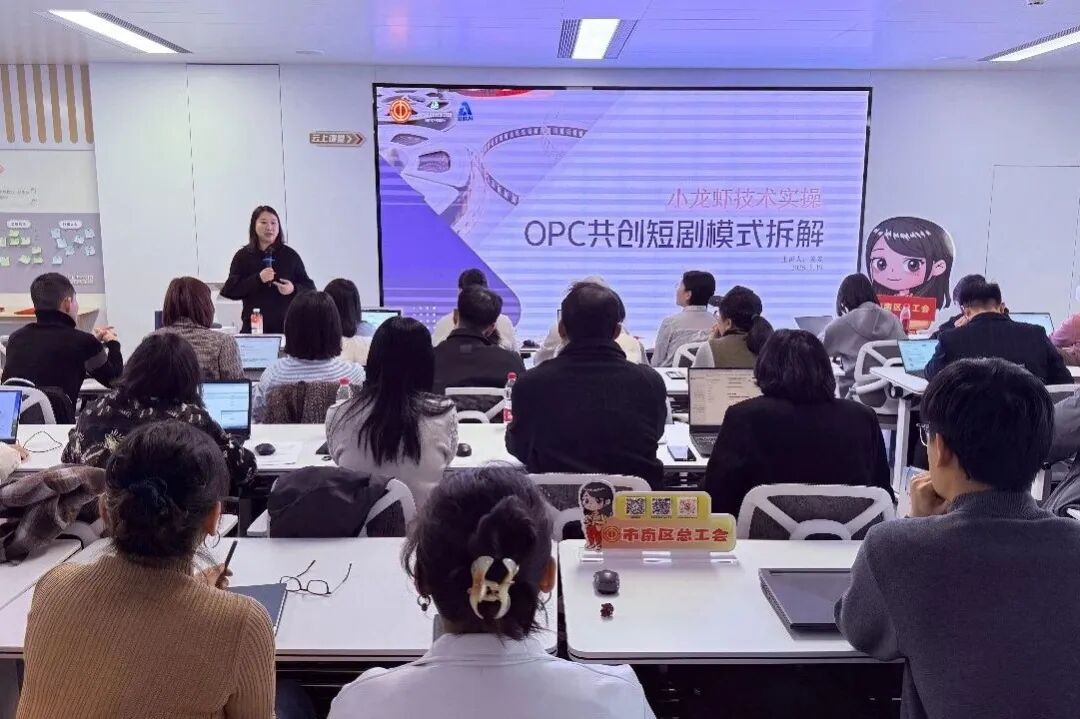 近日,市南区总工会在海天中心区域共享职工之家,开讲“龙虾工具”实操应用与OPC共创短剧新模式主题公开课。本期课程采用现场教学、沉浸实操、一对一答疑的实战化教学模式,并全面提升学员数字内容创作能力,助力AI短剧的高效创作与制作。