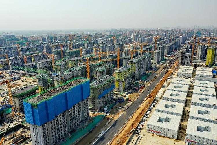 2021年是雄安新区大规模开发建设向纵深发展的关键一年。容东片区是雄安新区开发建设的先行区域,担负着承接北京非首都功能疏解和安置回迁群众的重要任务。这是2021年4月8日拍摄的雄安新区容东片区安置房项目建设现场(无人机照片)。2021年10月,容东第一批安置房开始交付。