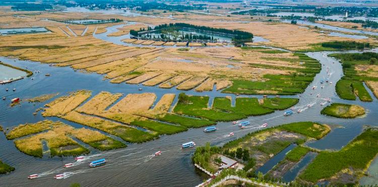 雄安坐拥有着“华北明珠”之称的白洋淀,具有天然生态优势。从一开始谋划新区建设,习近平总书记就强调要坚持生态优先、绿色发展。2018年4月21日,《河北雄安新区规划纲要》向全社会公布。按照规划纲要,未来雄安将镶嵌在蓝绿交织的生态空间之中,蓝绿空间占比稳定在70%。这是2018年4月30日拍摄的白洋淀美景(无人机拍摄)。