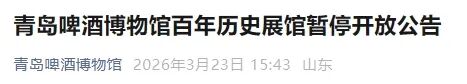 青岛啤酒博物馆 百年历史展馆暂停开放公告