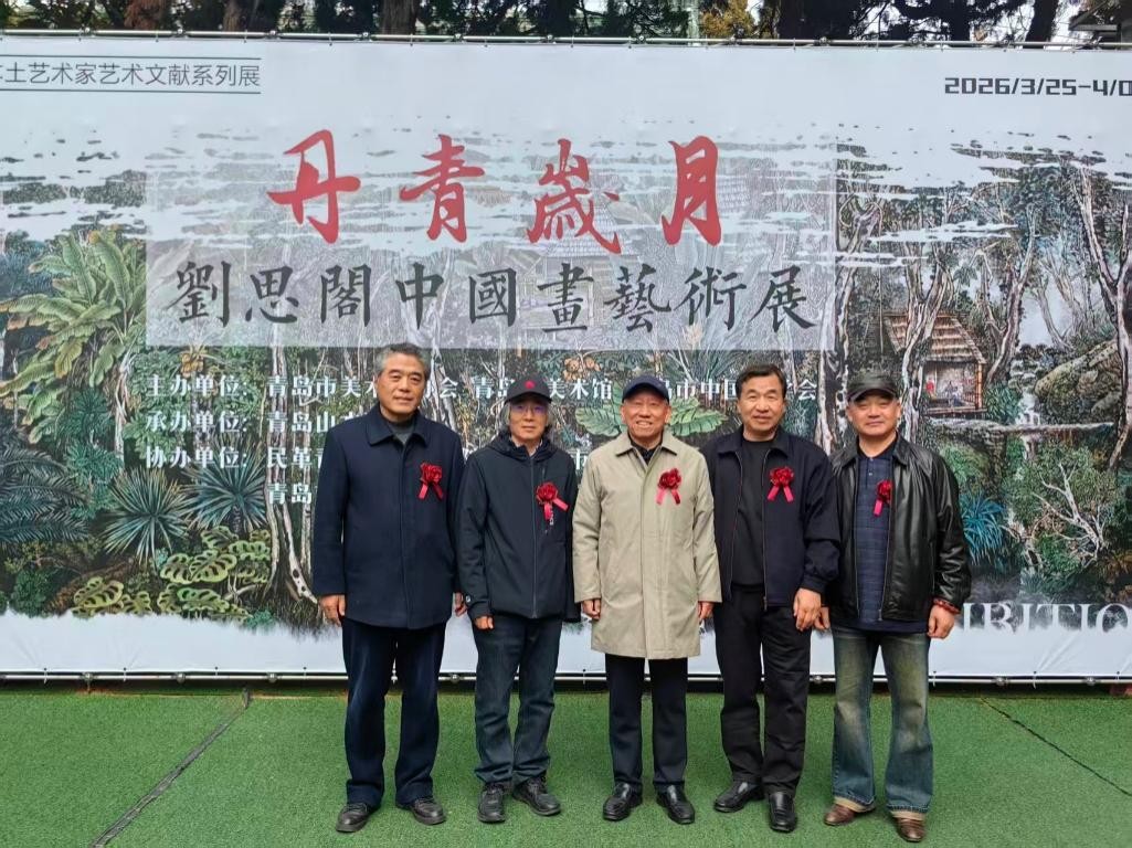 QMG青岛广电3月26日讯 2026年3月25日上午,“传承——青岛本土艺术家艺术文献系列展”之“丹青岁月——刘思阁中国画艺术展”在青岛市美术馆大殿展区隆重开幕。本次展览集中呈现了86岁高龄的青岛本土画家刘思阁先生六十余载艺术耕耘的百余幅山水佳作,吸引了青岛艺术界、文化界人士及众多艺术爱好者齐聚一堂,共同走进这位“讷于言而敏于行”的老艺术家动人的笔墨世界。