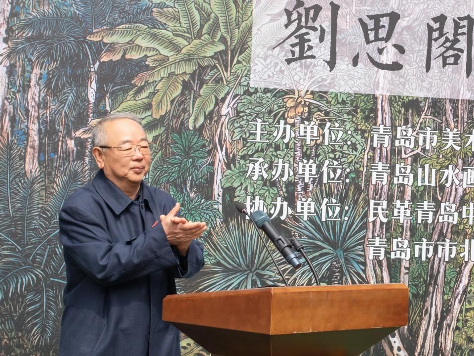 开幕式上,青岛山水画院院长单明波、青岛市人大常委会原副主任孙加顺、老艺术家蓝立克教授先后致辞。单明波在致辞中表示,刘思阁先生是青岛铁路地区书画鼎盛时期的带头人,他是青岛铁路系统参加中国美协主办的全国美展第一位金奖获得者,全国铁路美展第一位一等奖的获得者,山东省“五一文化奖”铁路系统第一位一等奖的获得者,是中国美协主办的全国性美展最早最多的参加者之一,是原铁道部授予的第一批“火车头艺术家”。在2003年退休后,他在小小的斗室里,用心画出了一幅幅震撼人心又生活味十足的美妙画作。青岛是一个艺术分围浓厚的城市,老艺术家们更是青岛艺术传承的宝贵财富。青岛山水画院承办这次展览,就是为了让更多人认识老一辈艺术家,让他们的艺术更好地发扬和传承。