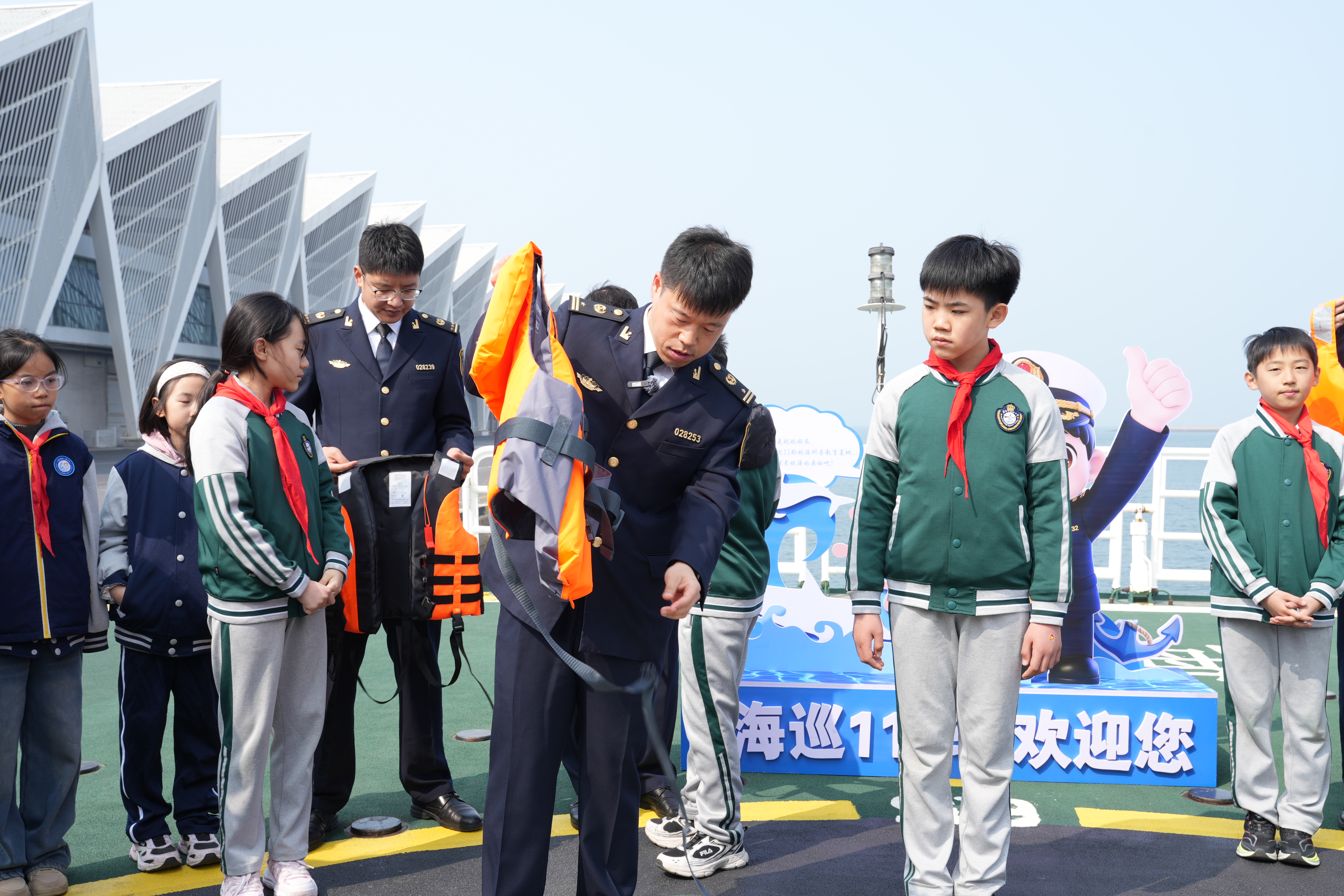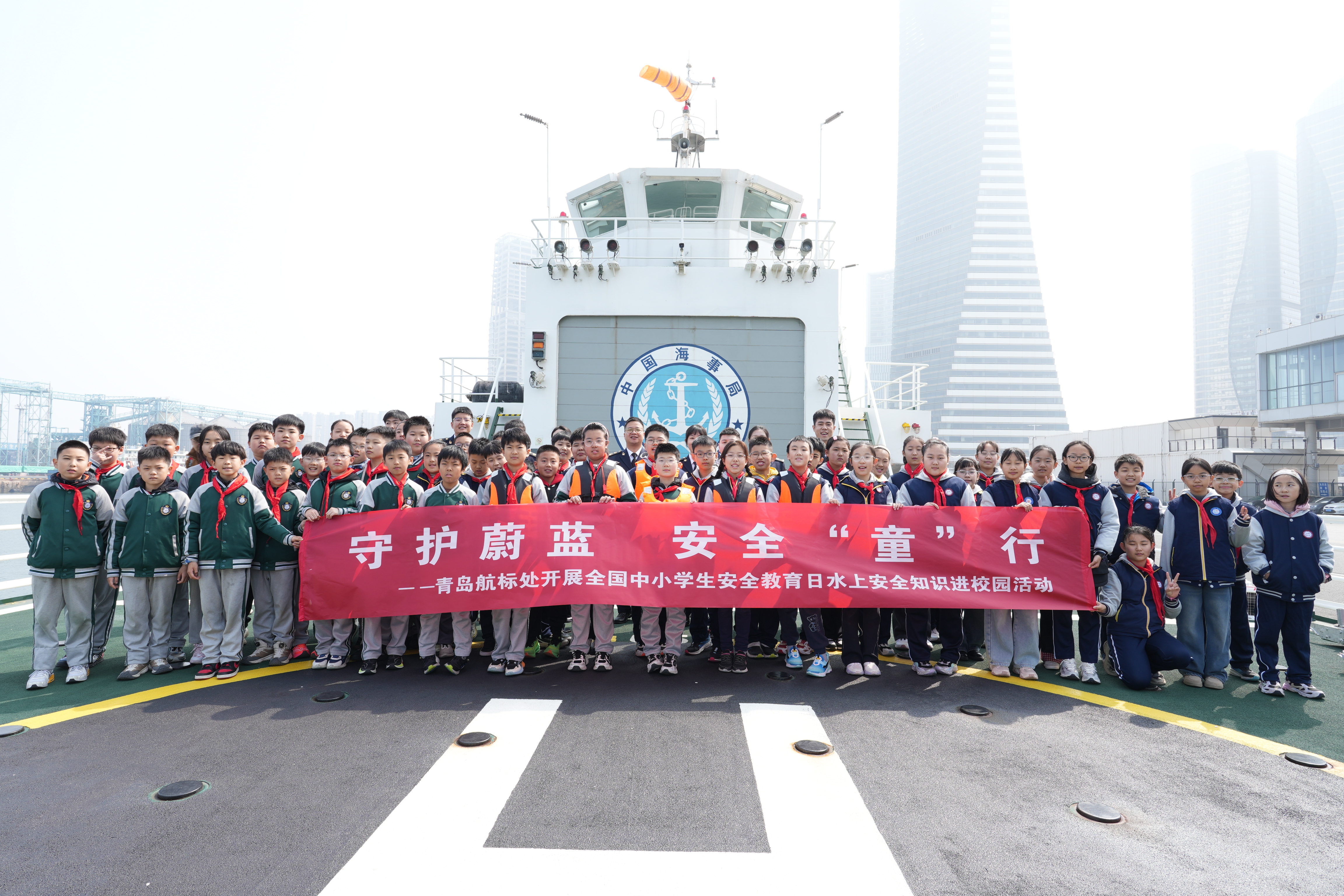 QMG青岛广电3月30日讯 为进一步增强青少年水上安全意识,普及防溺水知识,提升海上遇险自救与逃生能力,值全国中小学生安全教育日来临之际,青岛航标处联合青岛海事局,依托“海巡11”轮这一生动的海上移动教育基地,共同举办了“守护蔚蓝,安全‘童’行”主题实践活动。来自多所学校的40余名中小学生代表,在工作人员的陪伴下,开启了一场别开生面的水上安全探索之旅。