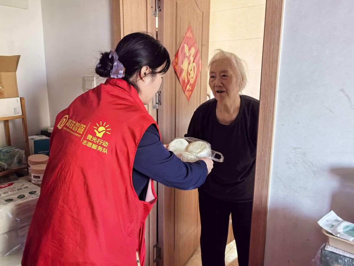 这份坚持是贯穿于每一天的“微光三问”:身体怎么样?今天想吃点什么?有什么需要帮忙的吗?从健康到饮食,再到生活所需,三句朴素的问候,成为志愿者与居民之间无声的契约,让每一位服务对象都真切感受到:“有人惦记着我。”