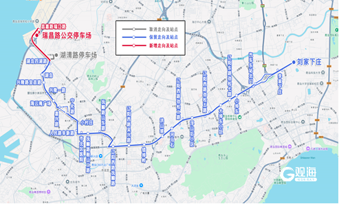 主站由湖清路停车场调整为瑞昌路公交停车场,副站为刘家下庄,调整后为:瑞昌路公交停车场—刘家下庄。