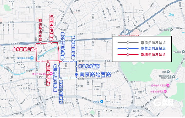 增设站:敦化路徐州路(并622路)、山东路鞍山路(并19路)、鞍山路山东路(并4路)、辽阳西路抚顺路(并4路)。