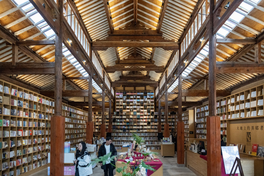 这是2025年3月17日拍摄的大理州沙溪镇先锋沙溪白族书局。这家书店坐落在剑川县距沙溪古镇约两公里的地方。书局依托村子的旧粮仓改造而成,如今已经成为一座文化地标和“精神粮仓”。