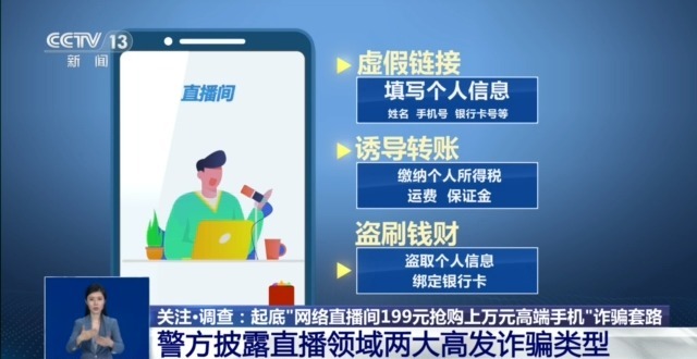 一部市场价上万元的品牌手机,在网络直播间里只要199块钱,看到这样的网络直播您会不会心动?然而当您以为自己在线上“捡漏”的时候,却不知道已经掉进了诈骗的陷阱。