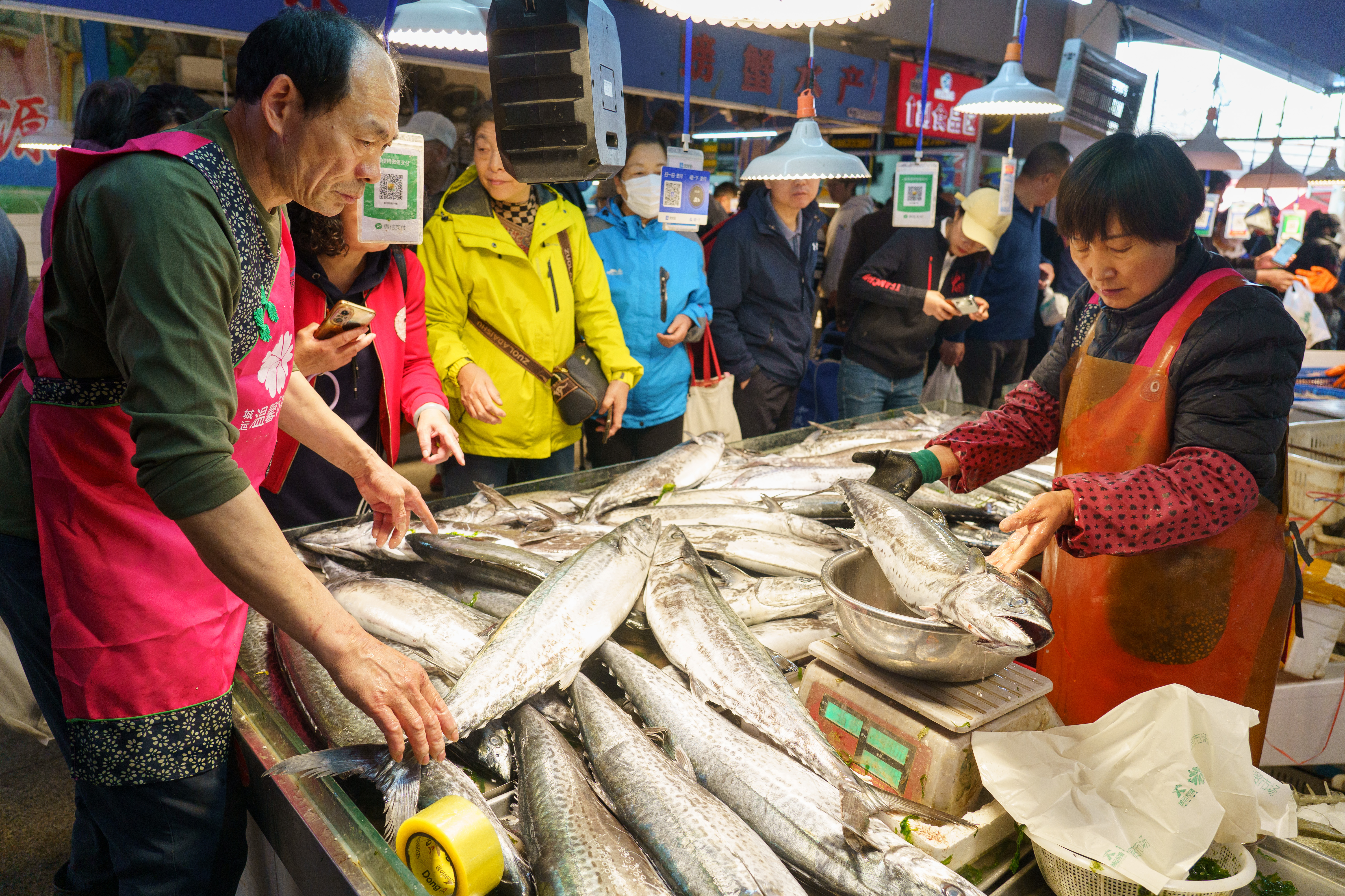 “我平常就习惯了来这儿逛逛,食品新鲜,就是放心。”家住山东路的王女士表示,自己每周都会坐几站公交车来康定路农贸市场选购食材,当天特意来挑选新鲜鲅鱼,给家人做上应季美味。